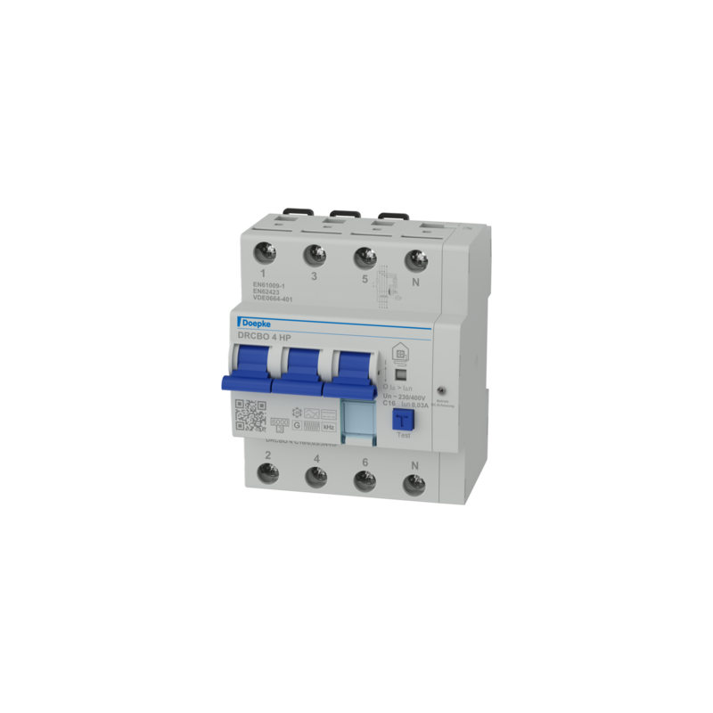 RCBOs combine residual current protection and overcurrent protection in a single device. This makes them ideal for use in distribution boards where space is limited. The rated breaking capacity of the DRCBO 4 series is 6 kA. These current circuit-breakers are AC-DC sensitive and provide VDE fire protection requirements for frequencies up to 20 kHz. Our HP RCBOs were specially developed for the protection of heat pumps. They meet all the requirements of leading heat pump manufacturers and provide perfectly tailored protection. Thanks to the HP-optimised short-time delay, system availability is significantly increased - ensuring especially efficient and safe operation of your heat pump. With tripping characteristic C, these circuit-breakers ensure reliable protection for your circuits with loads that generate higher inrush peaks. Standard circuit-breakers are designed for circuits with 230 V or 400 V at 50 Hz.